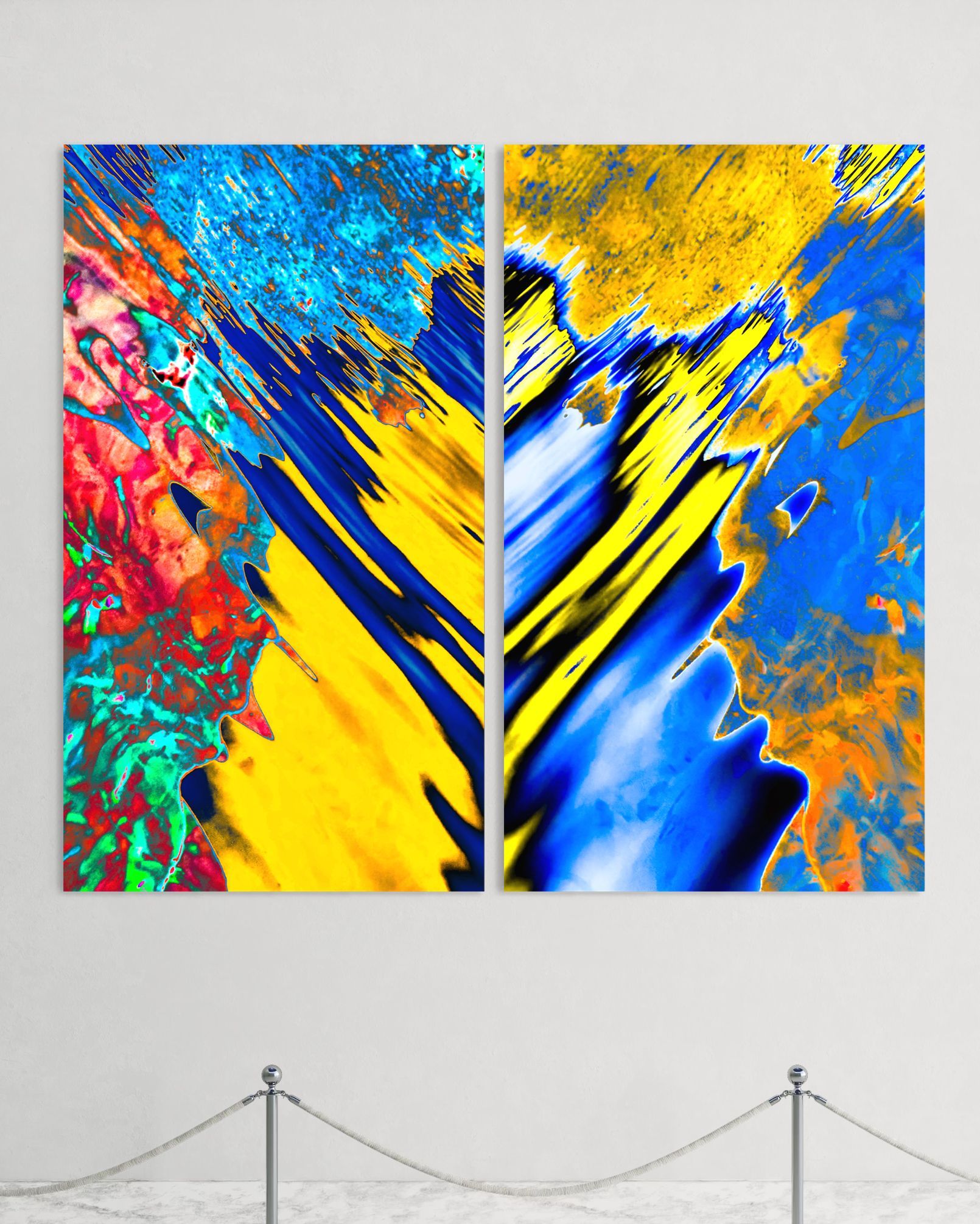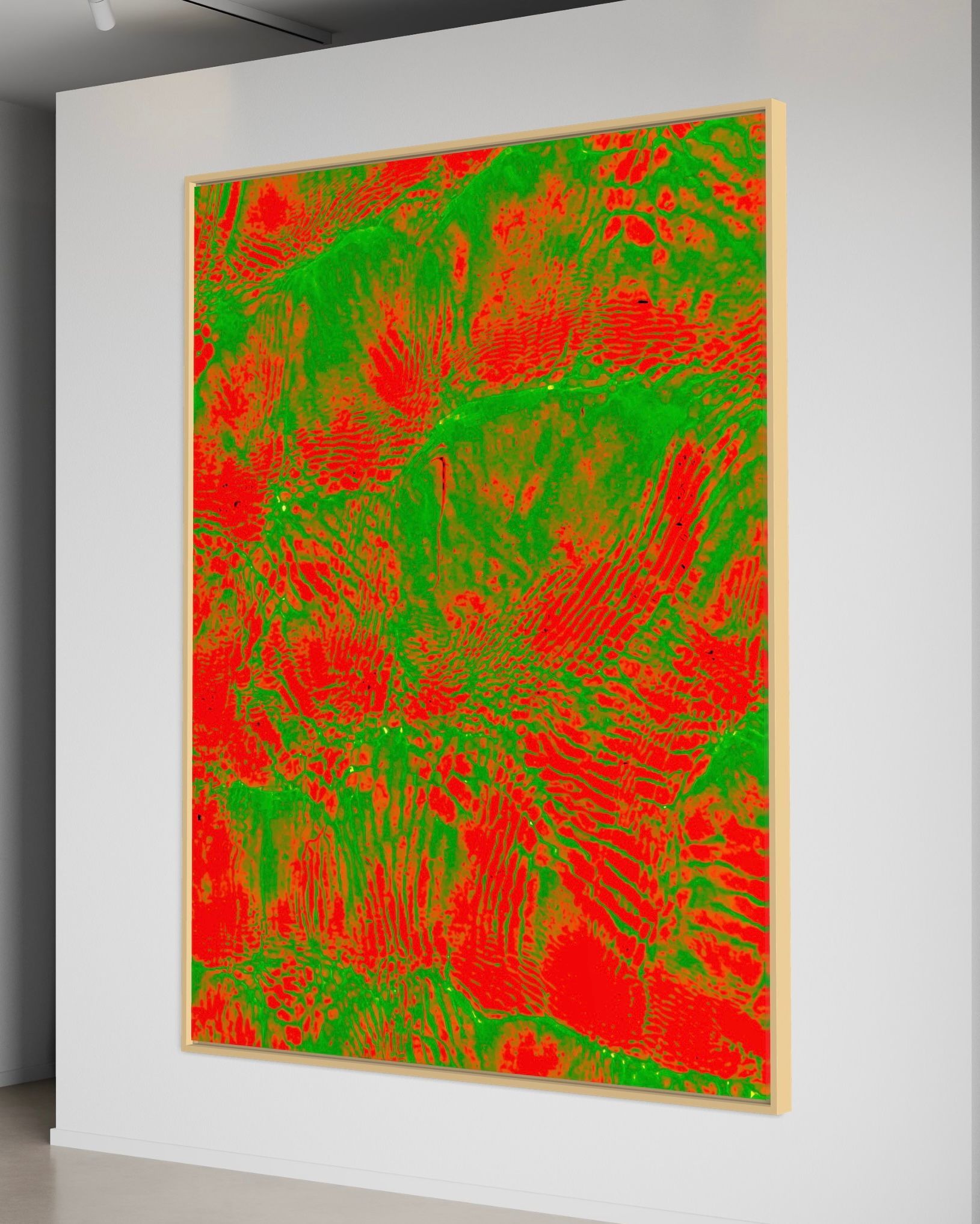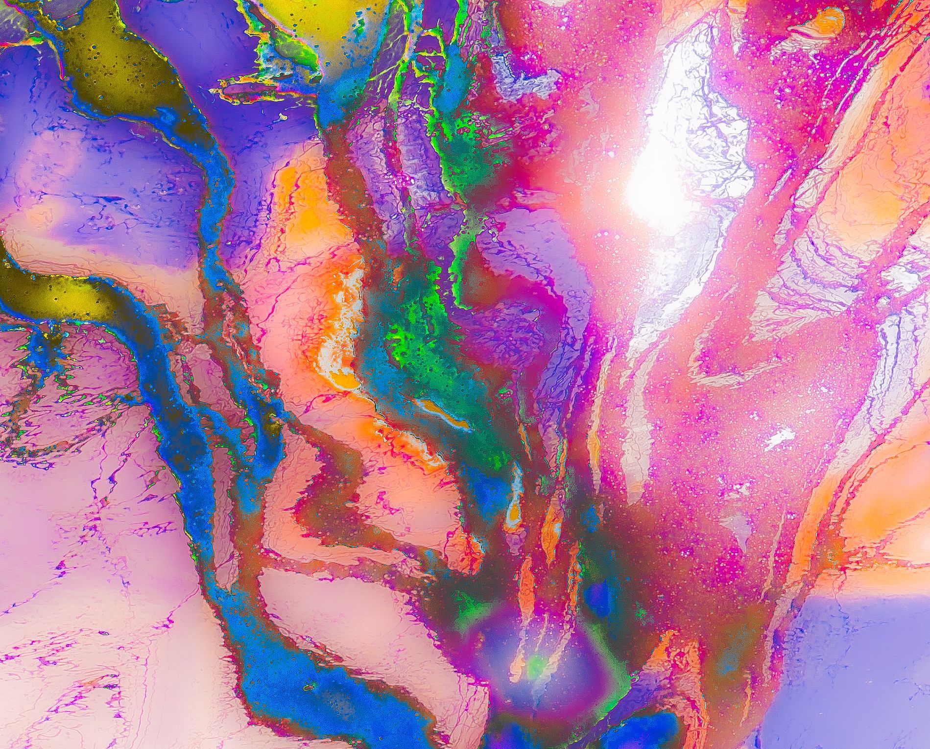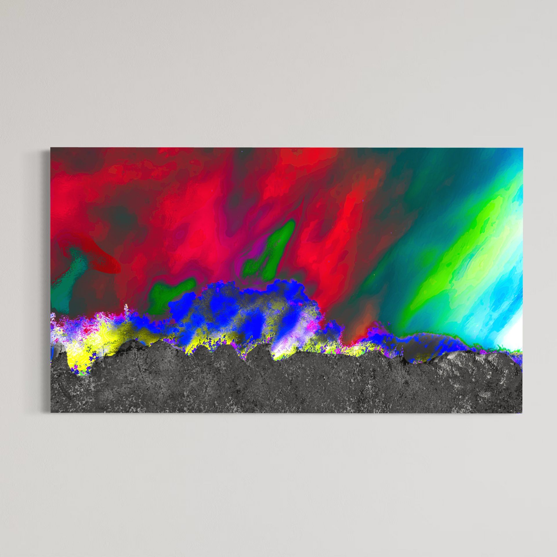 Eine Farbenpracht durch Farbpigmente, unter einer Acrylglasschicht, auf Aluminium. 80x142cm