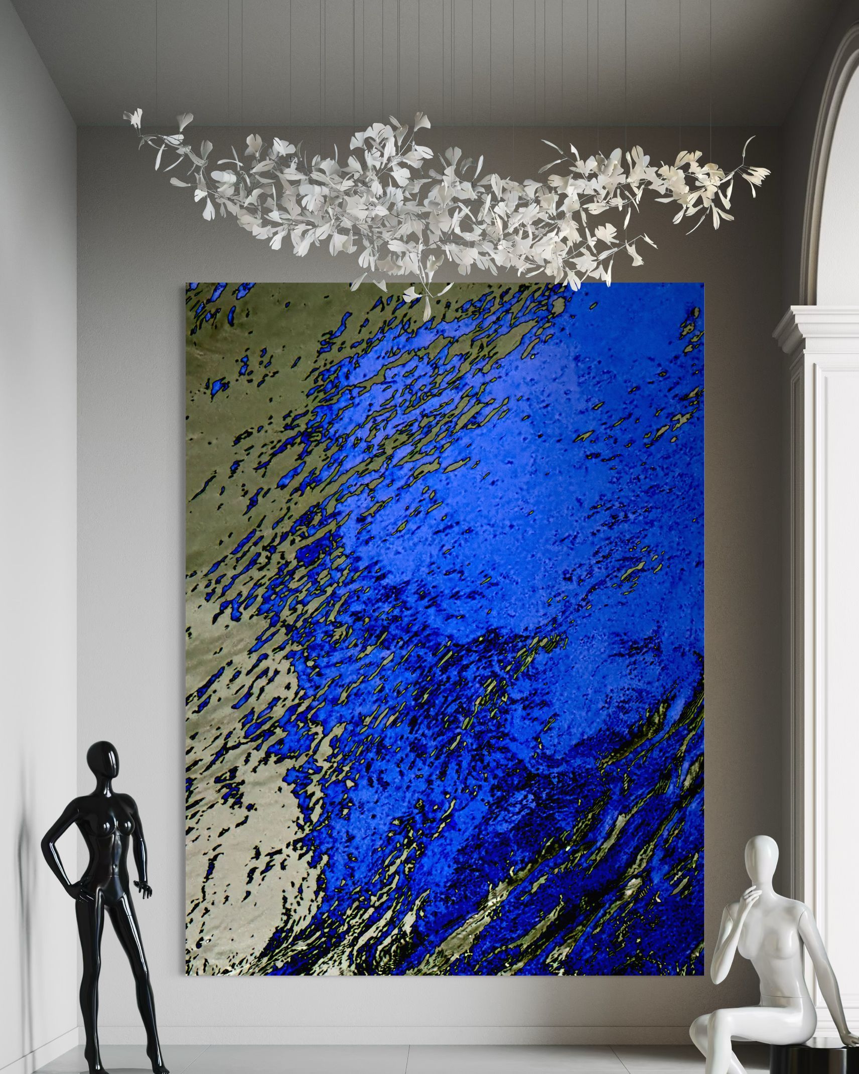 Es entstehen Werke wie eine Ode an das Wasser – an seine Vielstimmigkeit, Strömungen, an das ständige Wechselspiel von Licht, Farbe und Bewegung – Bilder, die sich mit den Farben im Raum, Licht und besonders Sonneneinstrahlung immer neu verwandeln. Sie tragen die lebendige Schönheit des Wassers in einen Raum und verwandeln ihn in eine fließende Symphonie aus Licht, Farbe und Bewegung.