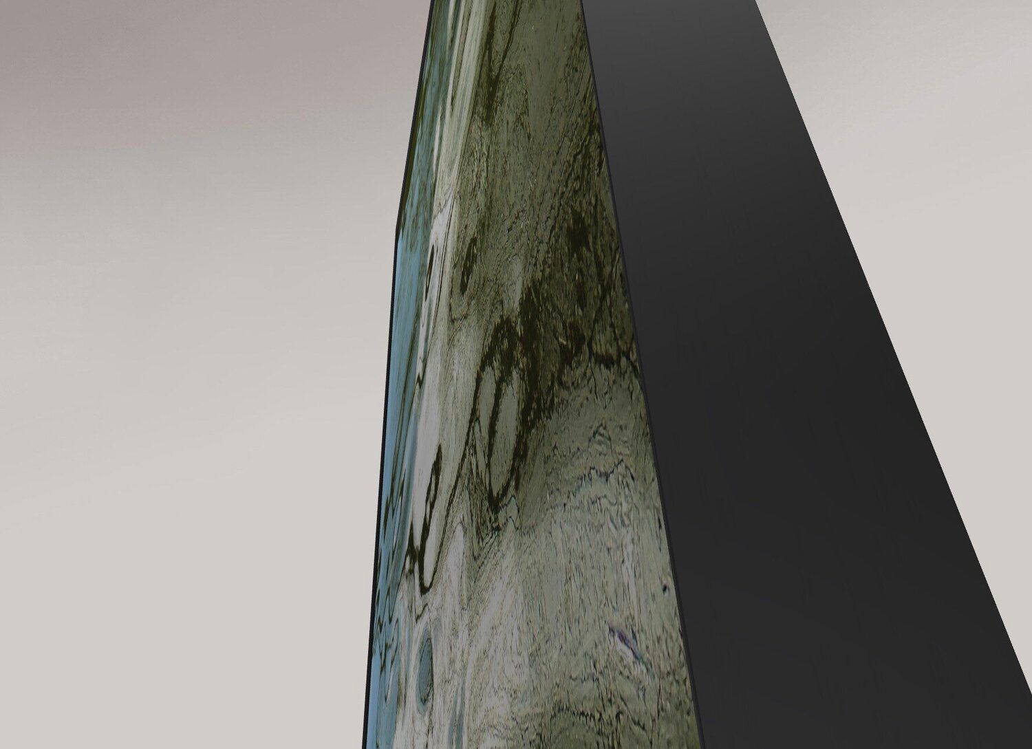 "TWO AND A KIND" Eine Geste des Organischen und Geometrischen, des Zufälligen und des Bewussten. Größe 2 x 61x106cm.
